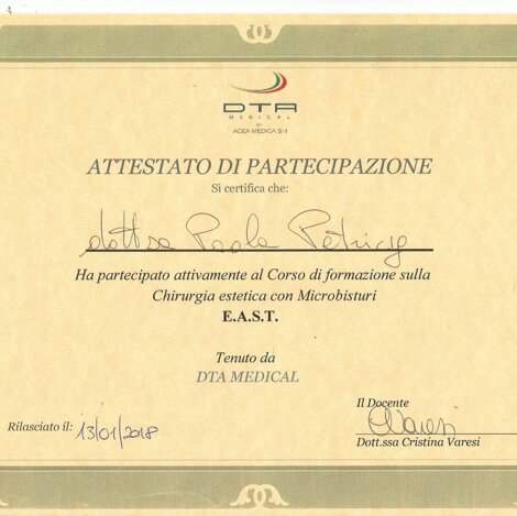- specializzazione in chirurgia plastica conseguita nel 2003